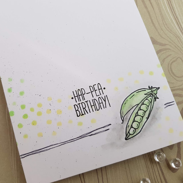 For my next two card, I did a bit of sponging and picked up some ink for watercolouring the peas ...
